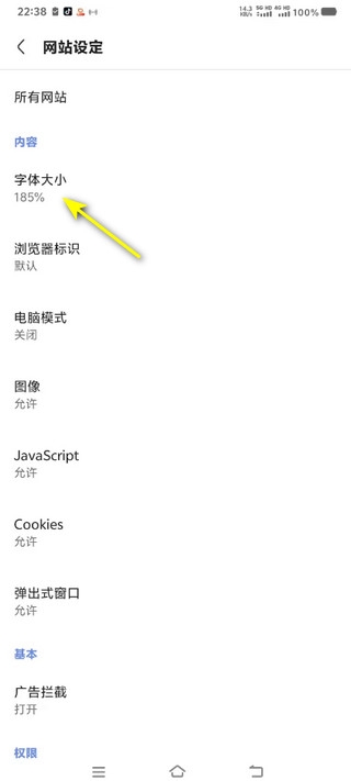 via浏览器如果想设置字体大小,只需打开设置->通用->网站设定->字体大小->,便可进行更改,设置完毕后,返回主页,便可看到字体大小更改成功!